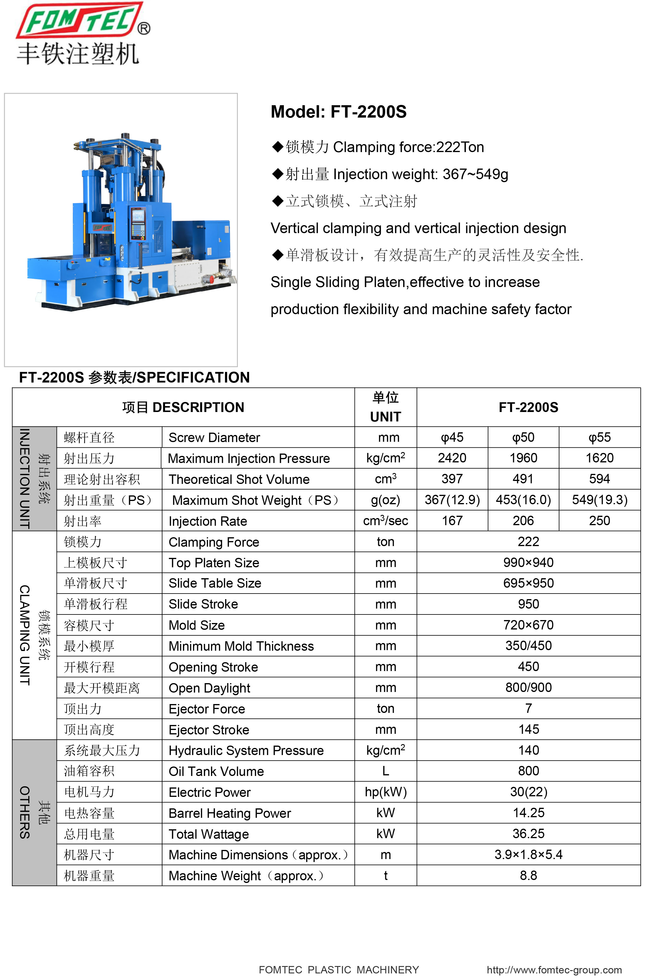 產(chǎn)品名稱:FT-S單滑板注塑機系列